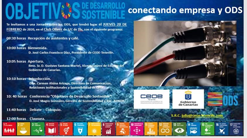La Confederación de Empresarios de Santa Cruz de Tenerife y el Gobierno de Canarias organizan una jornada sobre las ODS el próximo jueves 20 de febrero en el Club Óliver de Santa Cruz de Tenerife.