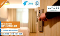 El Observatorio de Calidad del Cabildo de Tenerife, en colaboración con la empresa Luaces Consultores, impartirá un webinar sobre Estrategias de ReApertura Hotelera el próximo viernes 15 de mayo a las 17.00 h (Hora Canaria).